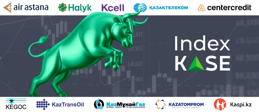 Index KASE-нің негізгі компаниялары: Эйр Астана, ЦентрКредит Банкі, Halyk Bank, Kcell, KEGOC, ҚазМұнайГаз, Kaspi.kz, Қазатомөнеркәсіп, Қазақтелеком, ҚазТрансОйл